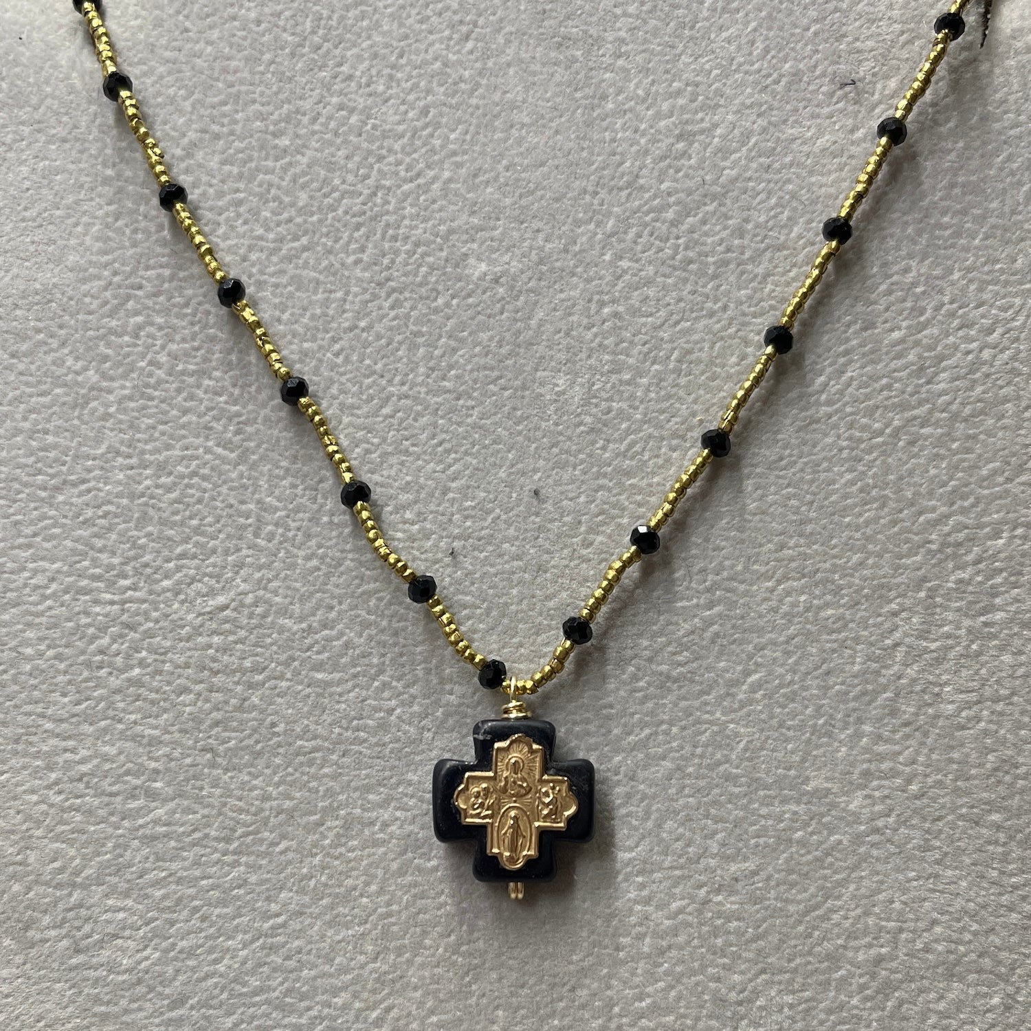 AB-N Tiny Cross on Black Stone with Onyx & Heishi