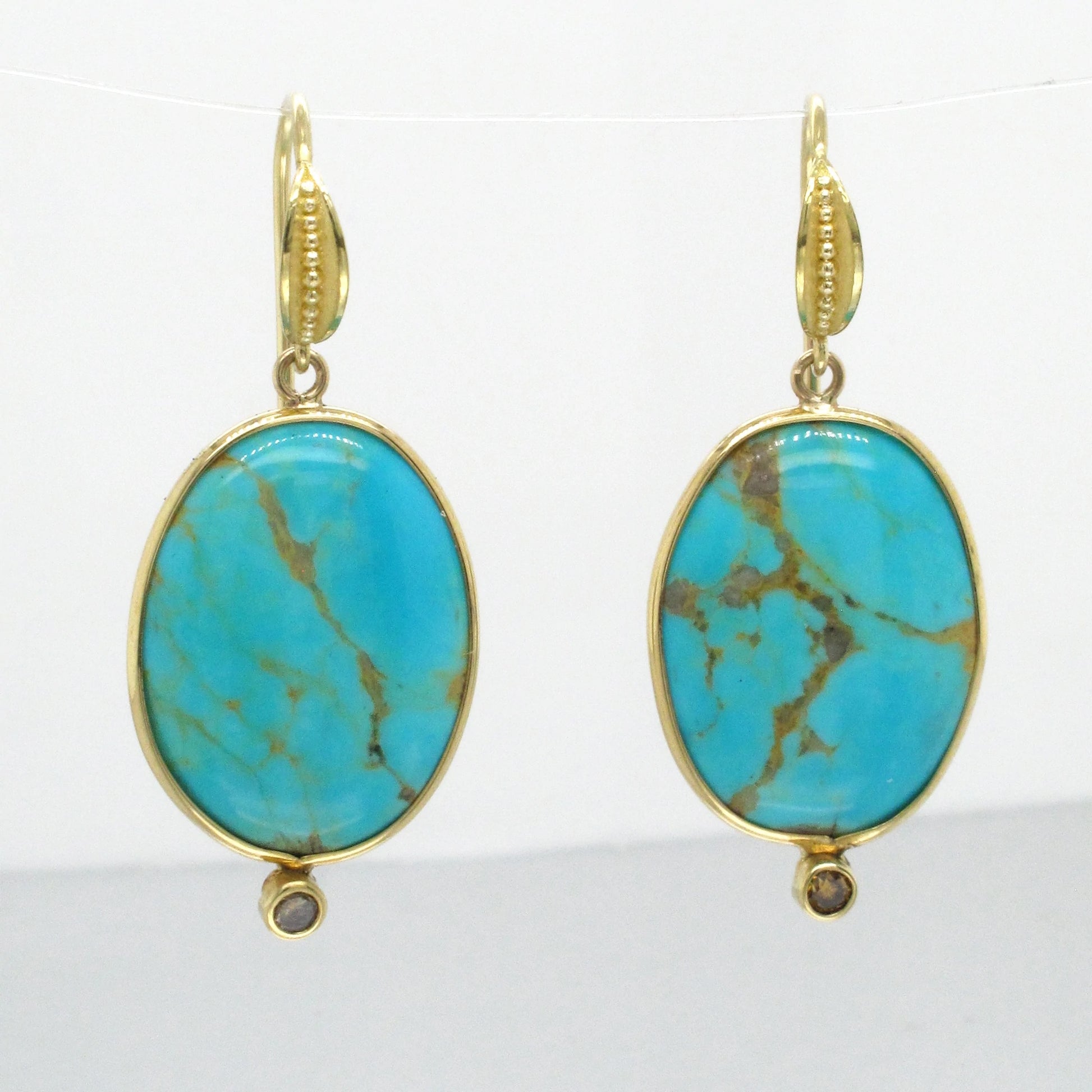 BHS E - Oval Bezel Turquoise Drop with Brown Diamonds