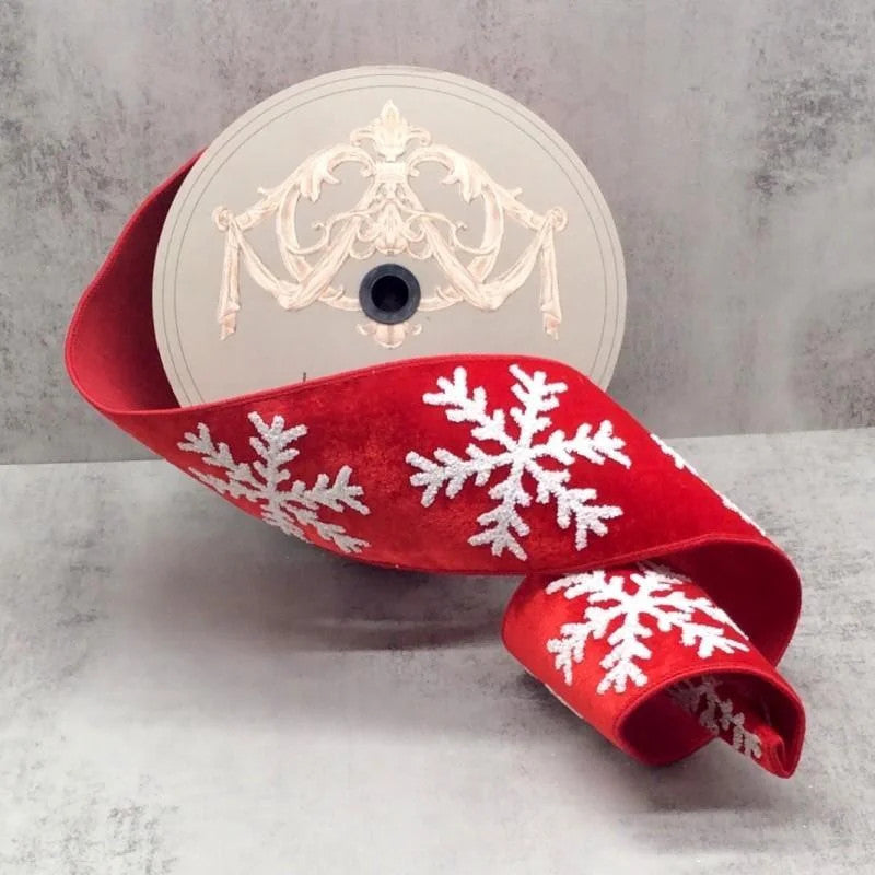 Red Velvet with White Matte Glitter Snowflake 4"x10yds