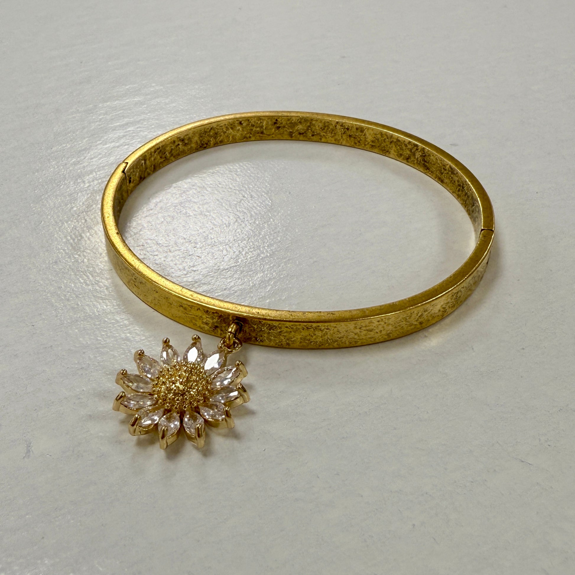 GDS Bracelet - Hinged Bangle with Crystal Flower Charm