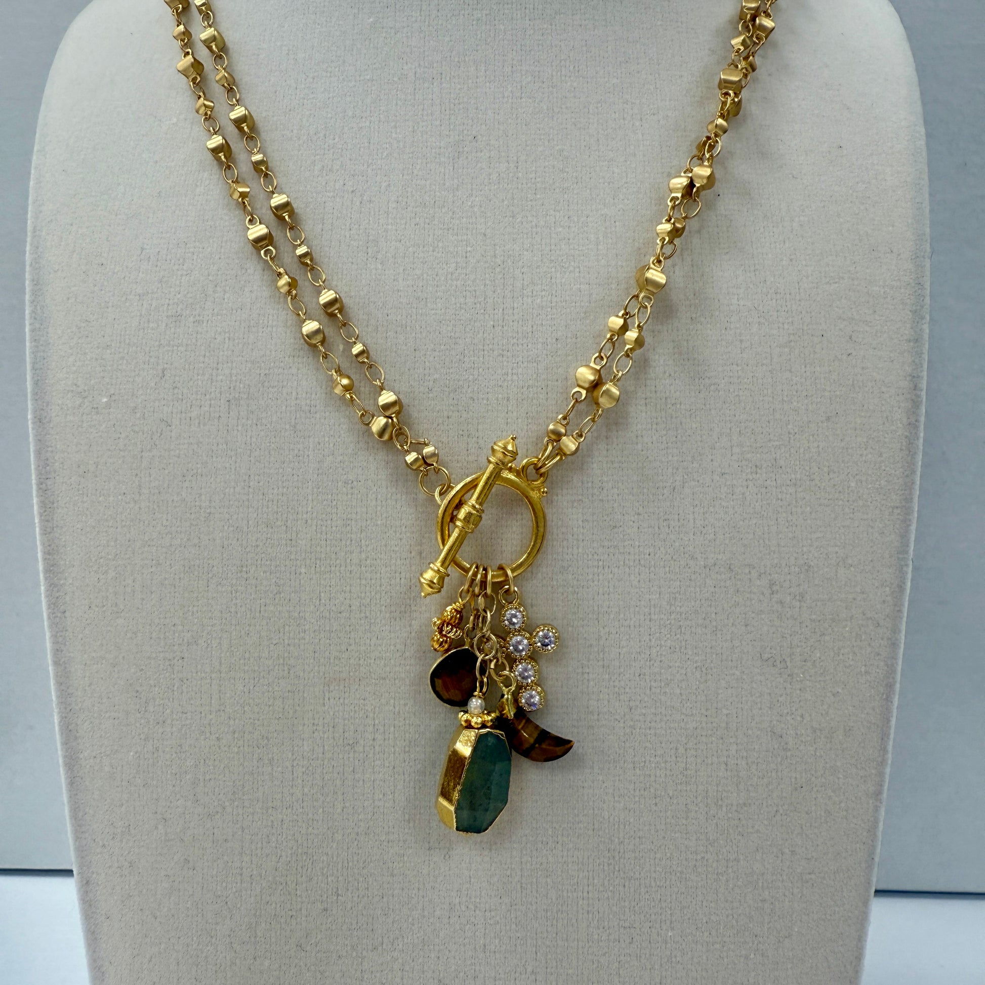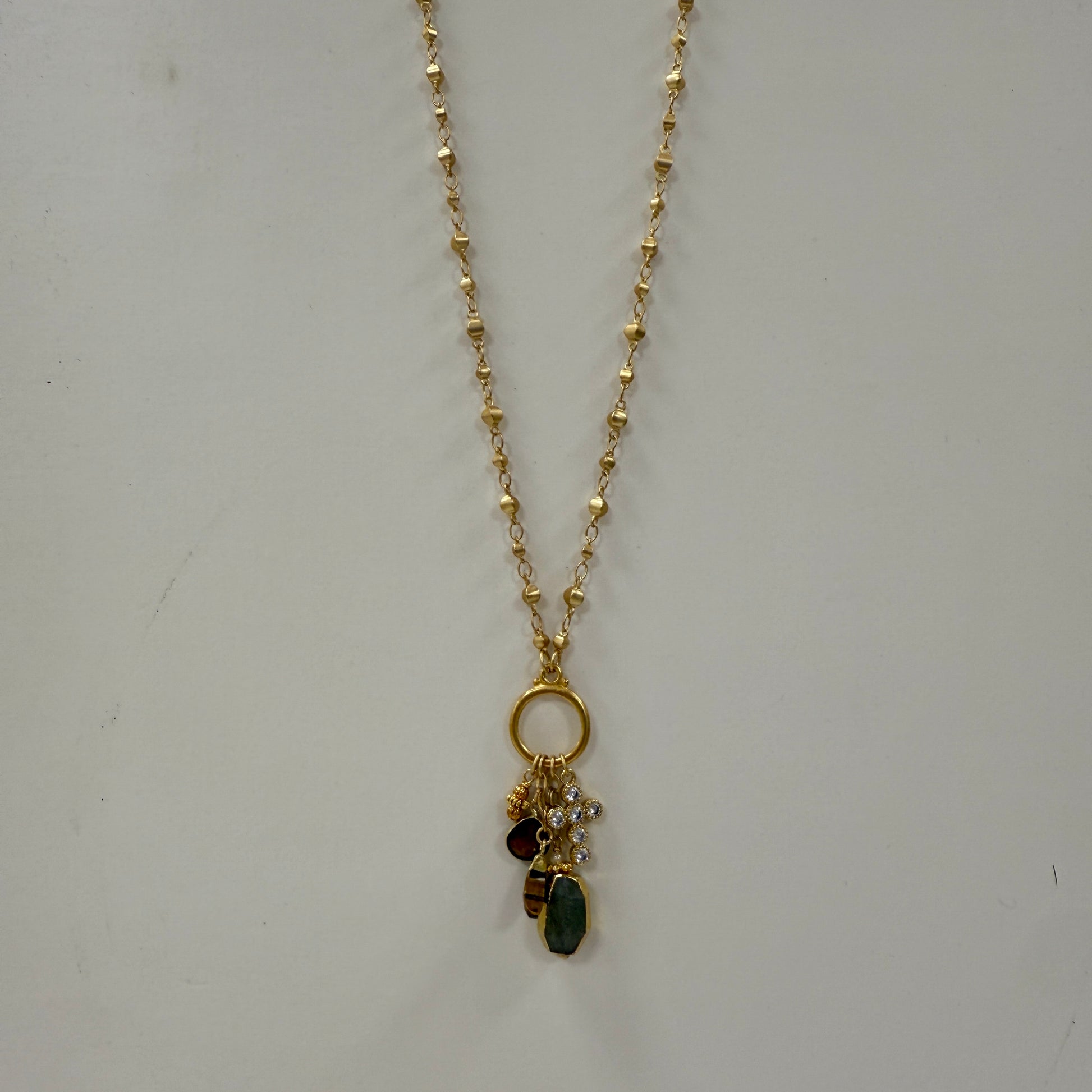 GDS Necklace - Long/Short Dot Chain with Drops & Cross
