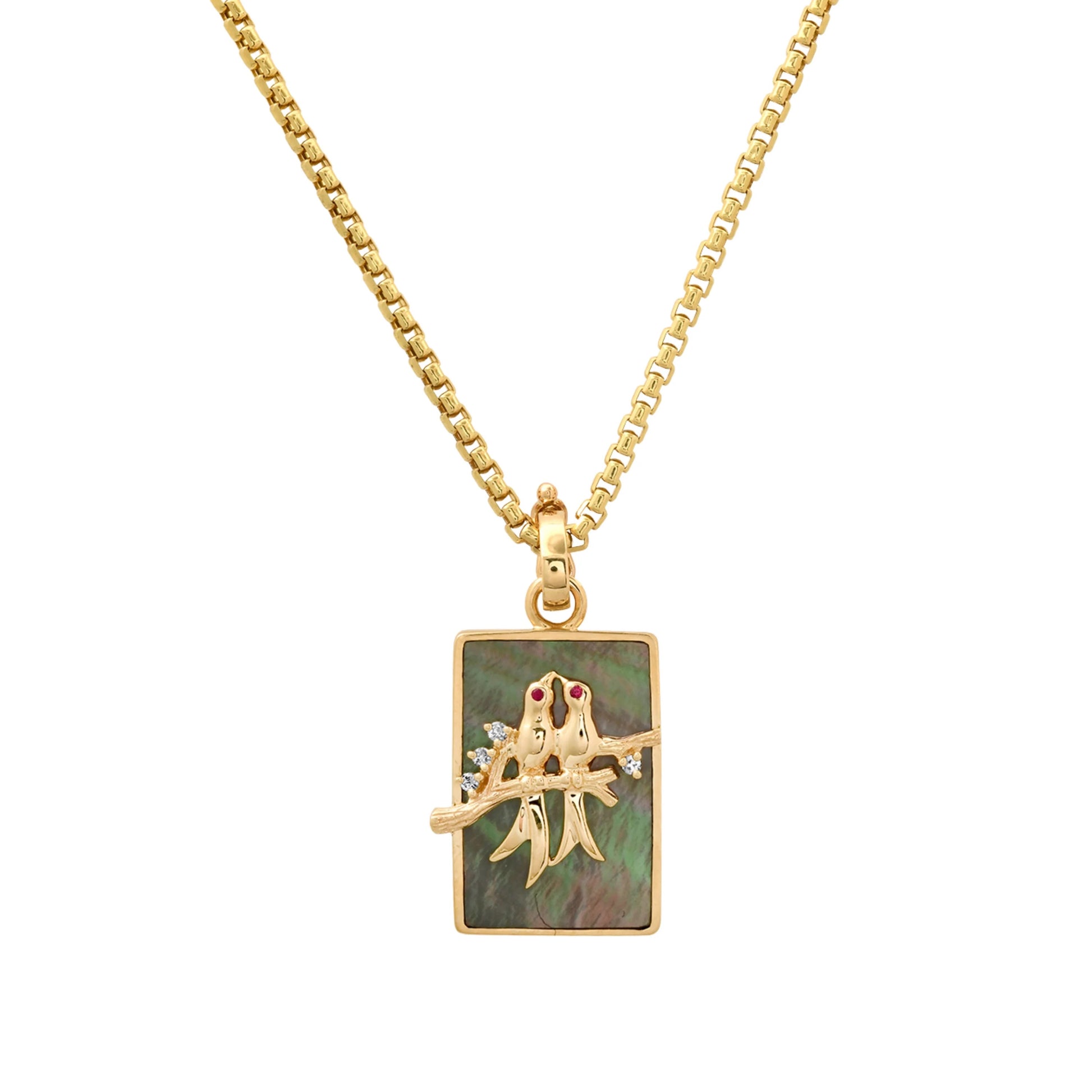 HRJ C Birds On A Branch: Small Black MOP Lovebirds Pendant