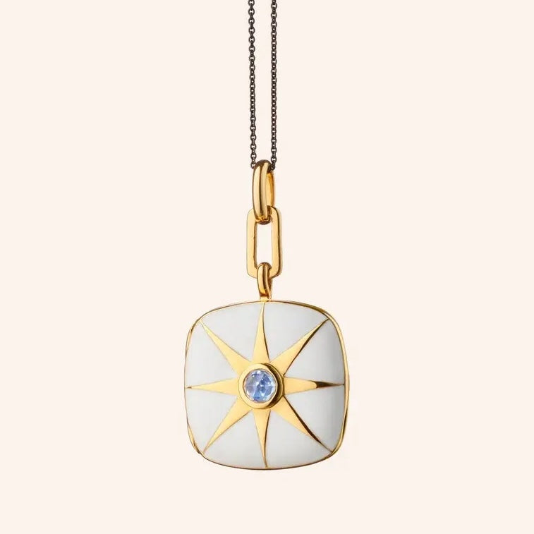 MRK White Enamel Sterling Silver & Gold Vermeil Locket Necklace W/Blue Sapphire